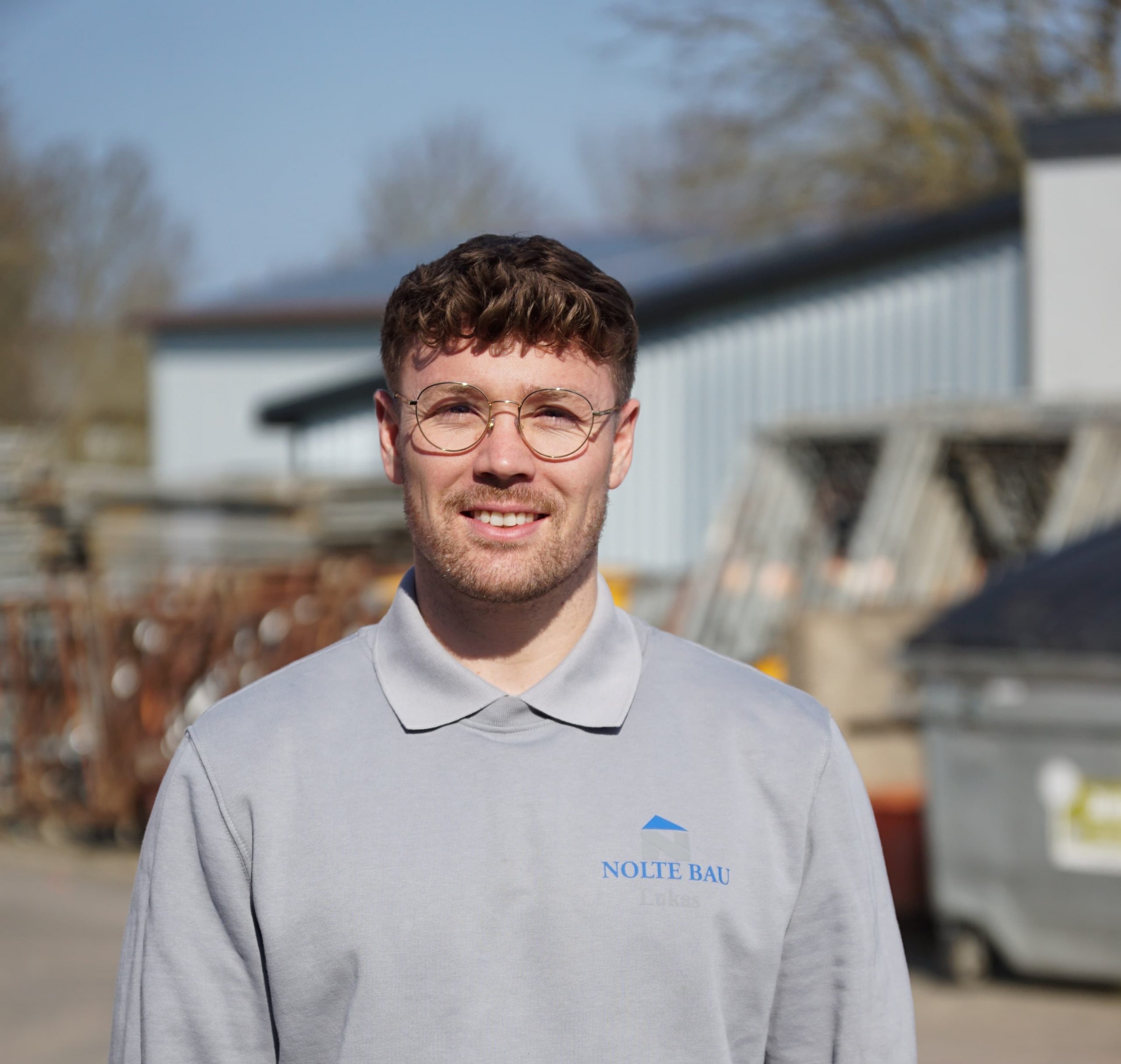 Lukas Nolte stieg 2021 nach seinem Studium als fünfte Generation ins Unternehmen ein. Seinen Abschluss Master of Science Bauingenieurwesen absolvierte er an der Leibniz Universität Hannover. Zusätzlich erlangt er 2025 den Betriebswirt nach Handwerksordnung.